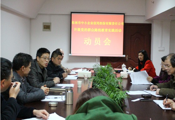 3月14日,桂林市中小企业信用担保有限责任公司(以下简称公司)召开党的群众路线教育实践活动动员会,市国资委党委书记、群众路线教育实践活动领导小组组长龙挥忠同志出席并讲话。